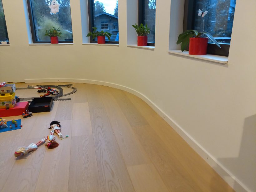 Er werd nog eens een deur geplaatst. De speelkamer begint dus al een stukje veiliger te worden. Vrij belangrijk in functie van de kindjes die niet plots achterin aan de knoppen van de vloerverwarming mogen spelen… of in het gat vallen waar ooit een keldertrap dient te komen :-). De deur werd ingekort want deze […]