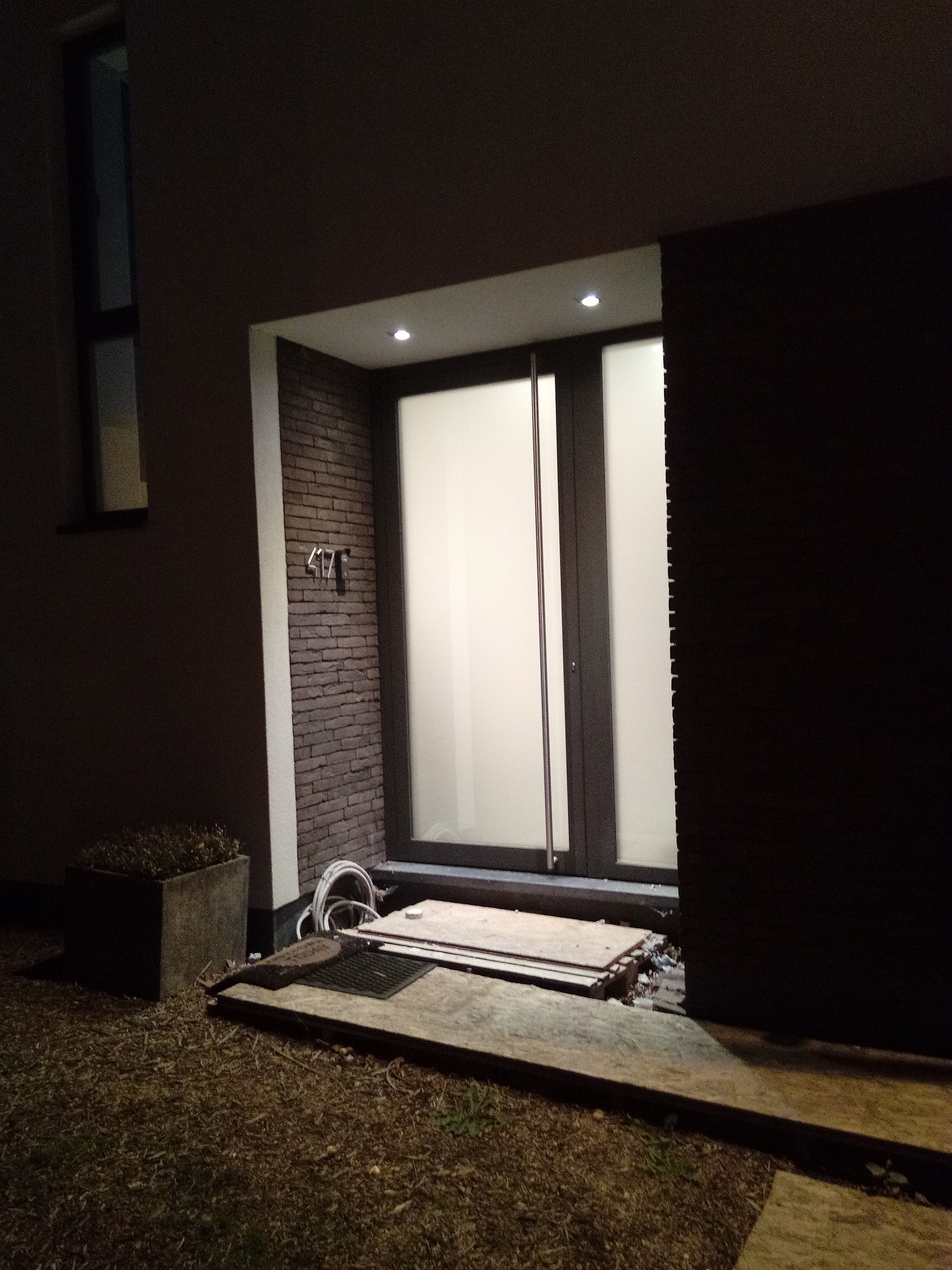 tip voor iemand die dit na wil doen: vierkante afdekplaatjes kan je best NIET uitlijnen met de lat maar beter met het blote oog. Je kan ze perfect metrisch uitlijnen, maar dan lijken ze volgens het oog gewoon schots en scheef te staan :-).