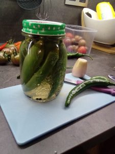 Daarom ging ik op zoek naar een receptje en kwam eentje tegen dat eigenlijk verdomd hard leek op die van de augurkjes. Enkel werd er meer suiker in gedaan. Op dit moment staat er 1 pot te weken, binnenkort volgen er nog enkelen.