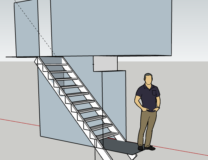 Een keldertrap is dus zeker een must en stap 1 was alles uitdenken. Aangezien ik me ondertussen voor de hobbydingen (en een speeltoren voor de kids… Hier komt nog een post over!!!) had zitten verdiepen leek het me logisch een keldertrap eerst uit te tekenen op google sketchup.