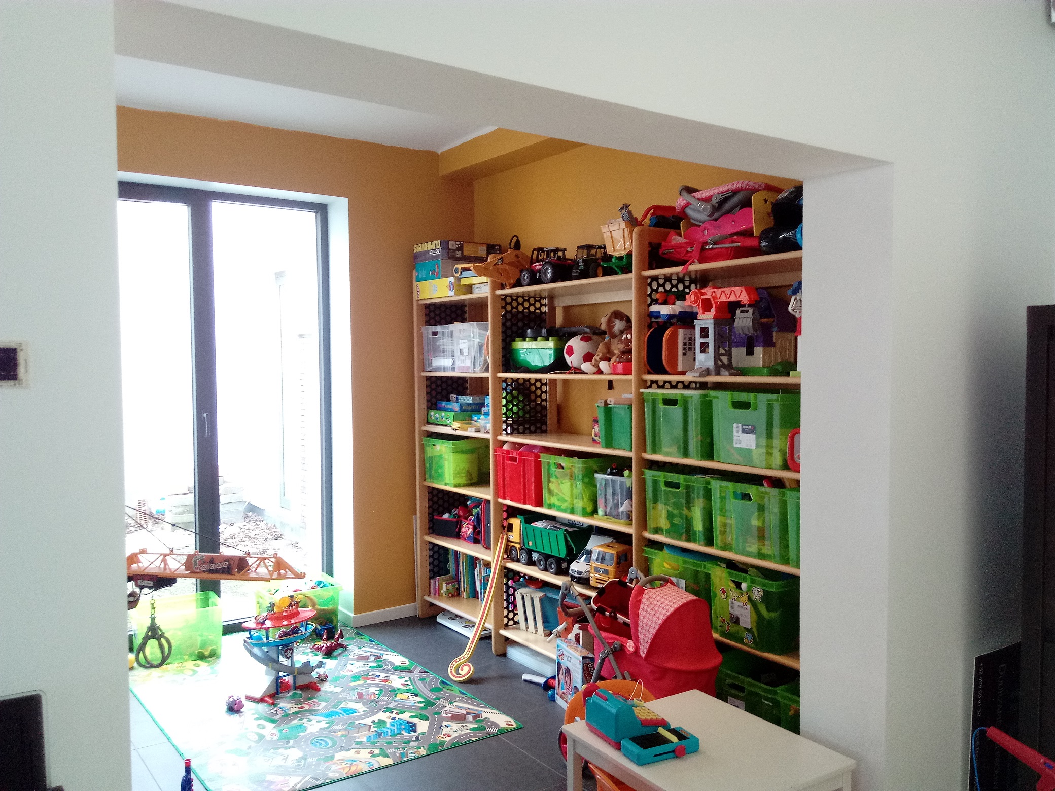 Waarom zoveel gevloek… de plakkerij van Bart is niet zo recht als die eigenlijk beloofde te zijn. Ook in de living zijn er enkele doorns die fameus m’n ogen uitsteken, maar daar valt op zich niet zoveel meer aan te doen. Het is niet recht, heeft her en der vreemde bollingen en schuren gaat, maar op een bepaald moment moet je stoppen met schuren anders krijg je de grove korrels te zien en is het helemaal “om zeep”.