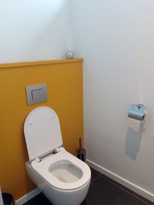 Na lang vloeken, schuren, bijplakken en opnieuw vloeken werd het toilet verder afgewerkt.