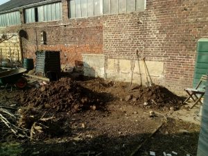 “Per ongeluk” (zoals ik wel meer zaken per ongeluk koop) heb ik graszoden kunnen kopen. Dat is een hoop miserie (spelende kinderen en net gezaaid gras) uitgespaard. Door een lange OSB-plaat te leggen wordt de druk van voetstappen afgeleid en kunnen de kindjes wel spelen…. voorlopig dus enkel een kwestie van elke keer de osb-plaat erop te leggen en terug weg te nemen…