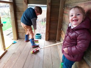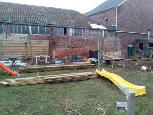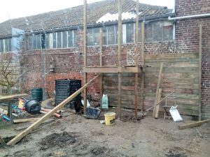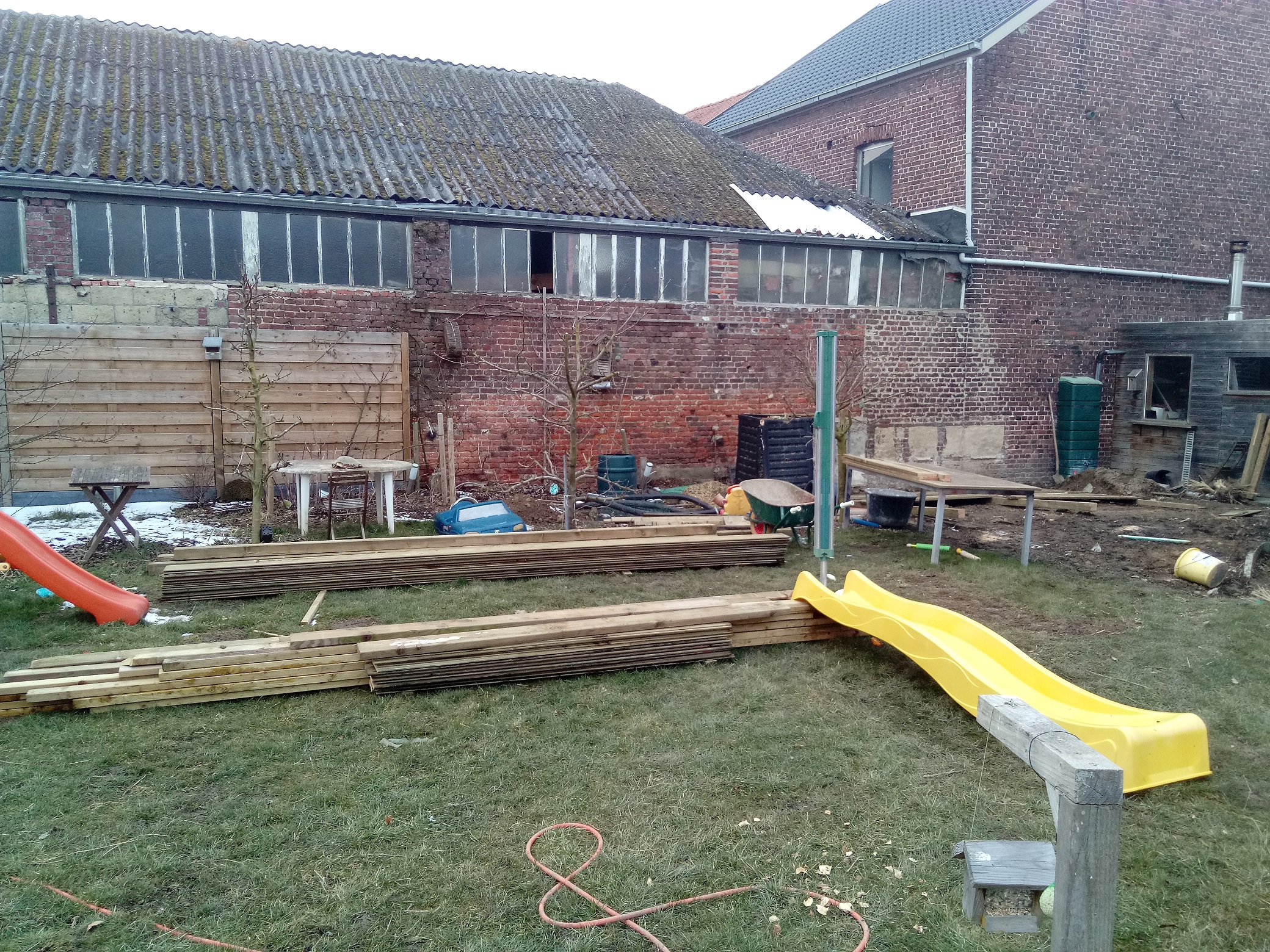 De levering hout kwam natuurlijk midden in die ENE sneeuwbui die het land weer eens lam legde… het was koud en hard werken… maar het heeft geloond 🙂