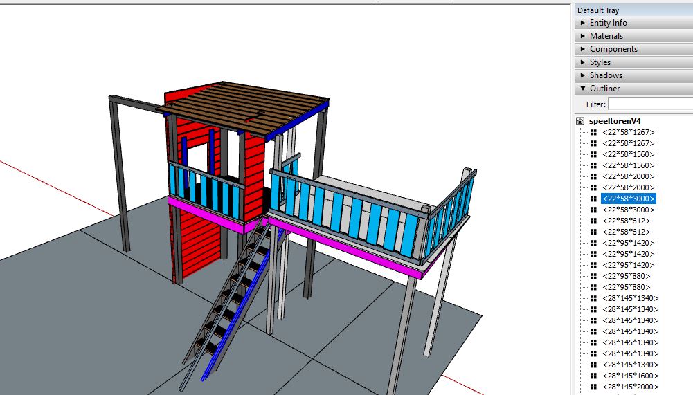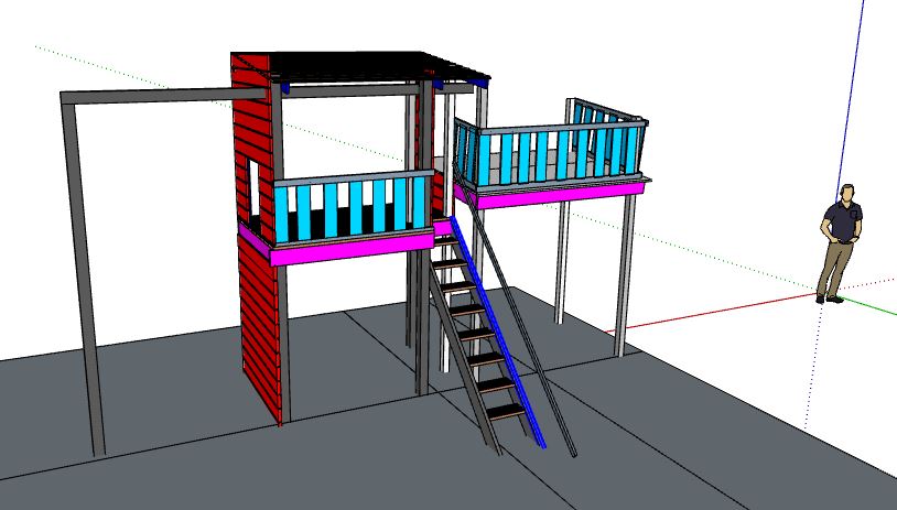 - Design in sketchup… het is ECHT leuk om op een paar mm na je palen correct te kunnen zetten en het platform klaar te boren