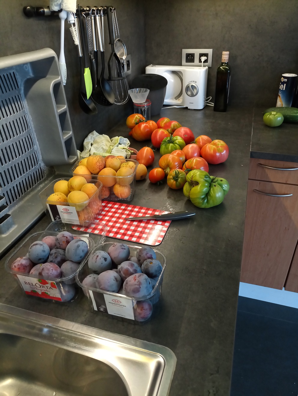Vlak voor we op vakantie vertrokken begonnen de eerste abrikozen rijp te worden (en pruimen). Na onze korte vakantie was het volle bak :-)…