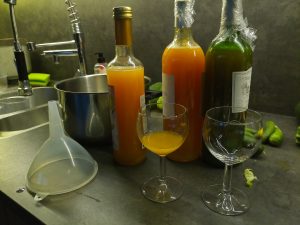 De alcolhol waarin de pitten hadden gezeten smaakt best wel “bitter”. Dus dat compenseert mooi het zoete van de abrikozen.