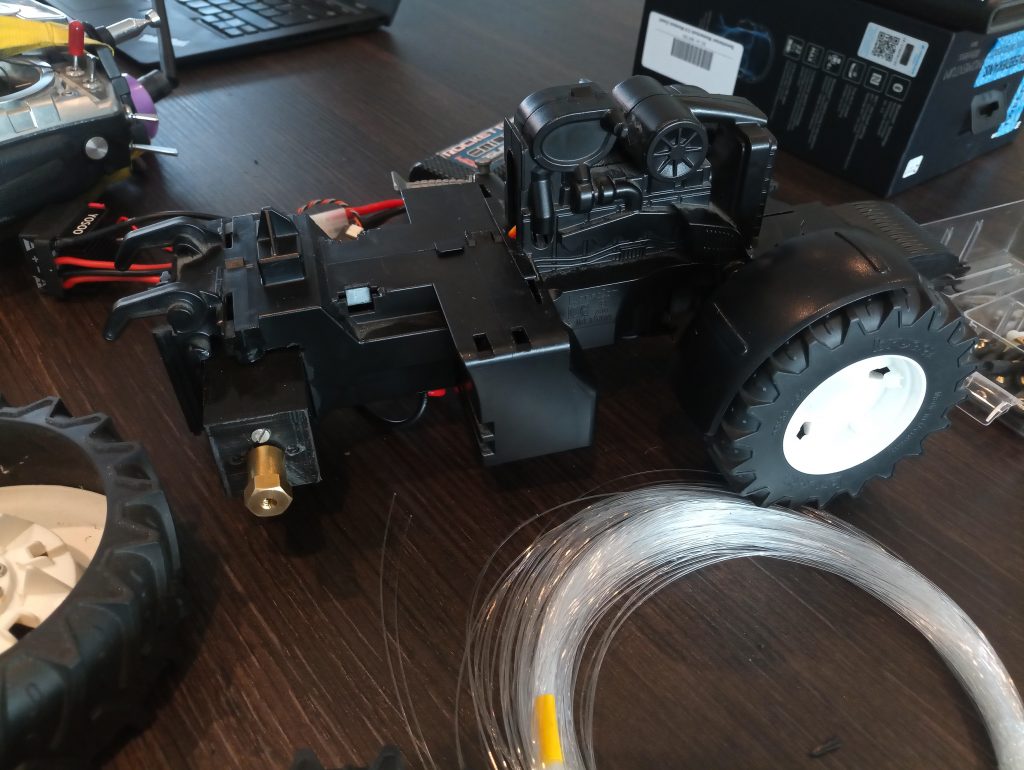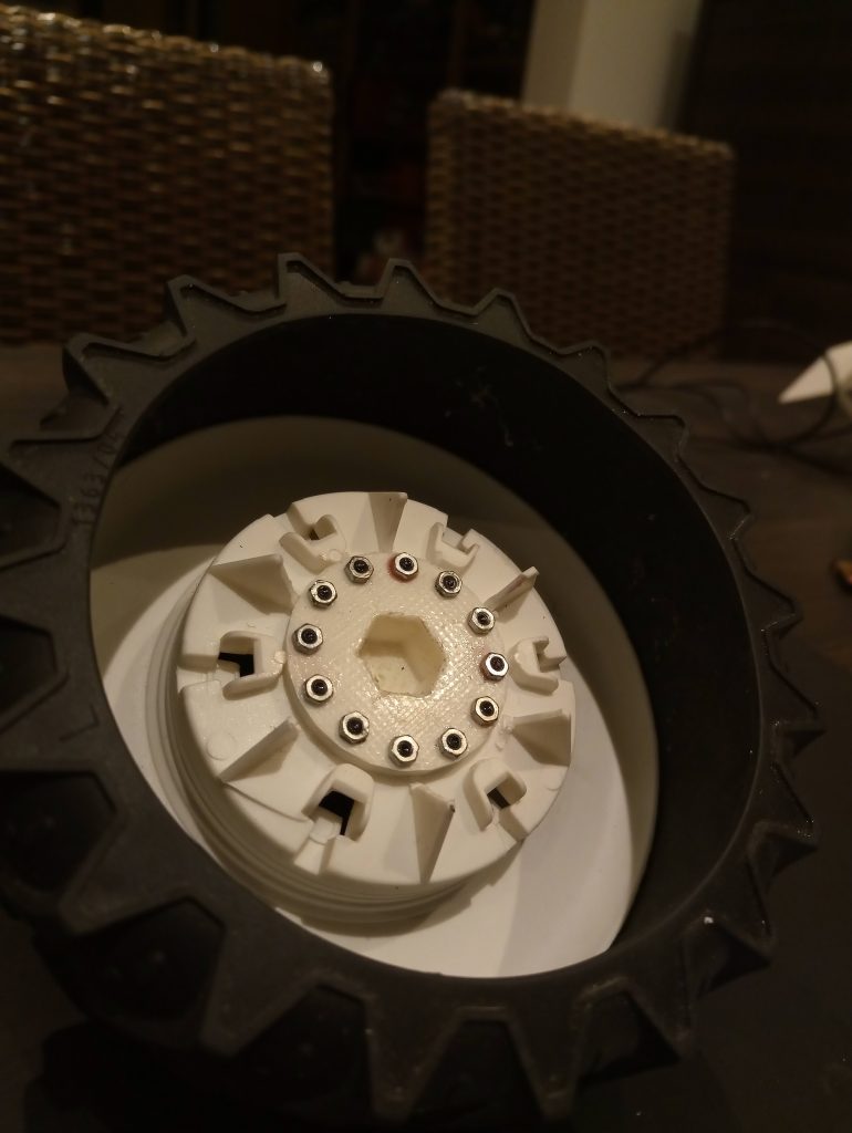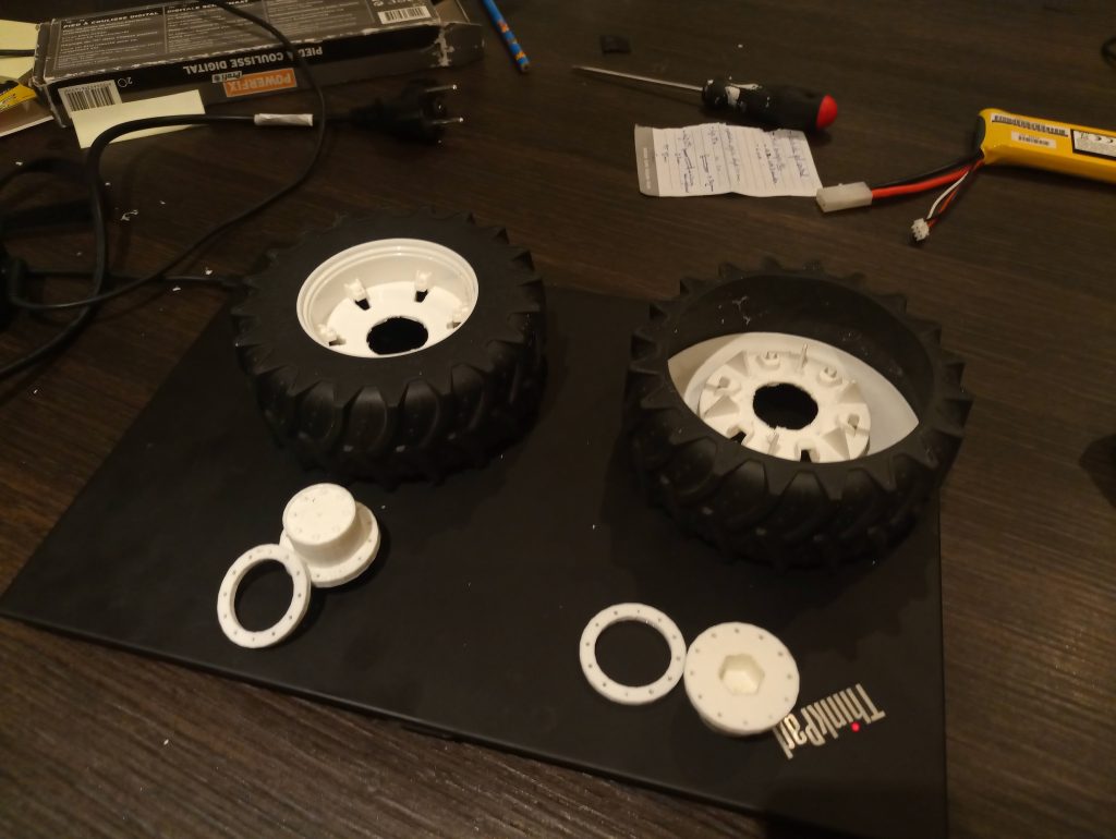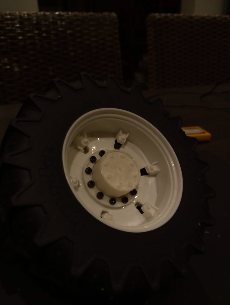 De elektronica. Hoe snel moet zo’n tractor (op schaal) nu eigenlijk kunnen rijden. En dus hoeveel rpm mogen de motortjes maximaal draaien. Ik had het idee in de achterkant 2 gearbox-motortjes te zetten om beide kanten te voorzien van een sterke motor. Hierop zou een (hex-)adaptor moeten geprint worden die vervolgens op de standaard wielen zou moeten komen.