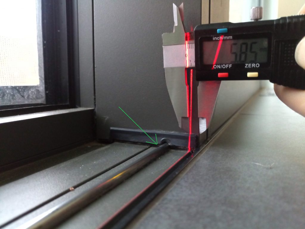 En wie heeft eenzelfde type raam(bij voorkeur uit 2016) en kan bevestigen dat na intensief nameten het railtje onderaan NIET 2mm of meer naar binnen staat dan dit eigenlijk zou moeten staan? (aangeduid met de groene pijl).