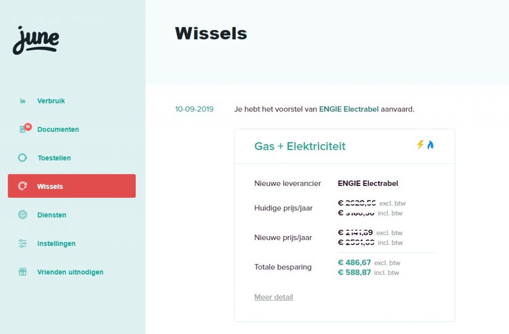 De huidige status… wel ondertussen veranderde ik deze maand een vierde keer van leverancier. En met de gegeven volmacht is dat voor mij niet meer als een “akkoord” -knopje inklikken op de website van june als me een nieuw voorstel wordt gedaan.