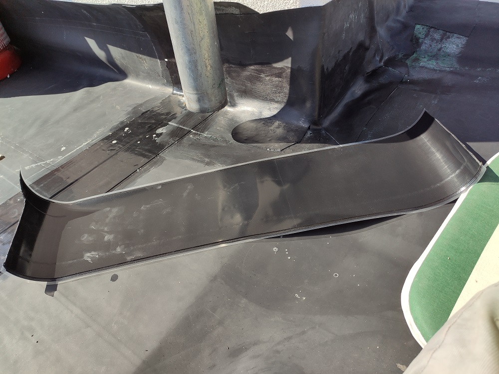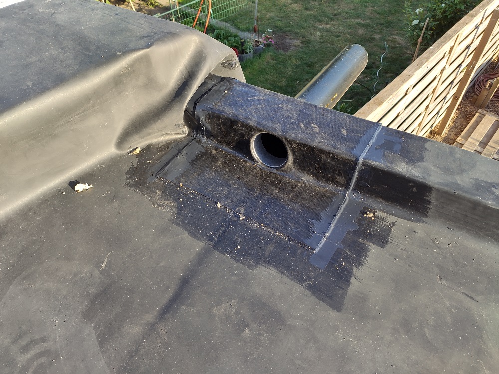 De regenwater doorvoer is idem dito hetzelfde materiaal. ook daar wordt er op dezelfde manier te werk gegaan.