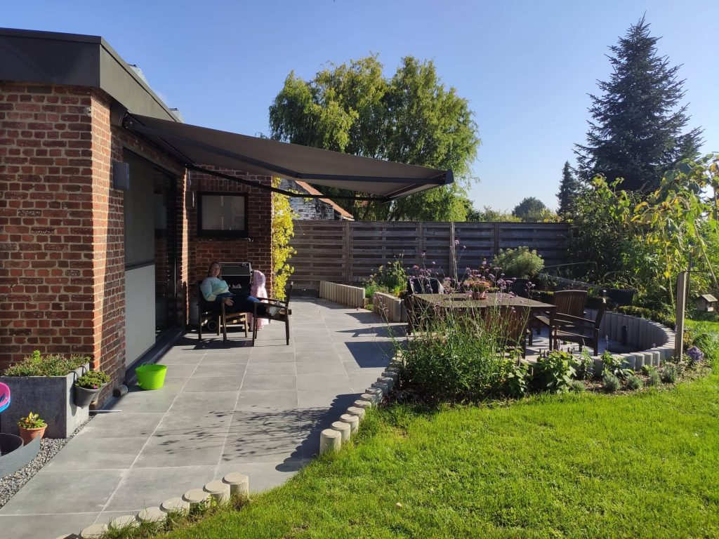 Maar alles hangt ondertussen, de afstandsbediening werkt naar behoren en het houdt wel degelijk de zon buiten… moest die nog hoog staan :-). In de winter staat die té schuin en is het effect (zie plaatsing stoel met vrouwlief) eerder zeer beperkt. We wachten dus in spanning op de volgende zomer… EN … de windsensor, want ook die is er nog niet bij, horen we niets meer van én zit er nog een deel van het factuur onbetaald.