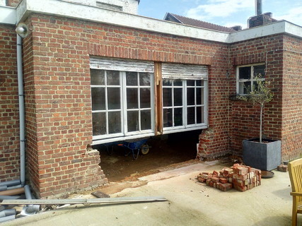 Onze aannemer Marco (AM-bouw: http://ambouw.be) is er meteen ook ingevlogen. Een klein beetje later als voorzien, maar van mij mag die aan dit tempo lustig (niet Rustig) voortdoen đ