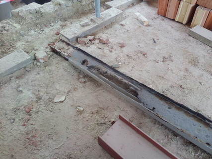 Klein beetje frappant, de metalen steunen die gedurende jaar en dag gediend hebben om de gewelfde kelder te dragen waren duidelijk aan vervanging toe… Ben ik effe blijf dat ik erop stond die kelder af te breken en weer op te bouwen :-). De nieuwe opbouw zal pot-balk worden van Rector.