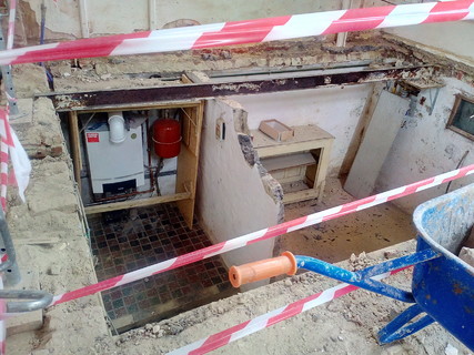 De helft van de kelder is er al uit en de raamgaten zijn ook bijna gedaan…