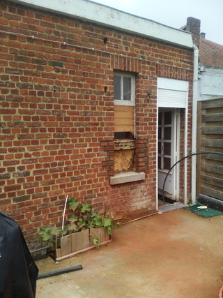 Het raampje voor de toekomstige berging/waskot werd verlaagd. Hierbij werd de huidige arduin “gewoon” lager geplaatst.