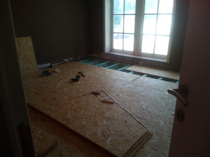 Nu kunnen de mannen van AM-bouw meteen over de OSB-lopen en onze ramen verhogen… Weg met die vensters op enkel-hoogte!