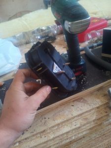 om alles deftig te kunnen aansluiten moet er een inbouwdoos voorzien worden, maar aangezien die ook nog toegankelijk moet zijn langs buiten kan die nu nog niet geplaatst worden en moet er gewoon een uitsparing voorzien worden. houten plankjes stapelen is dan de enige optie.