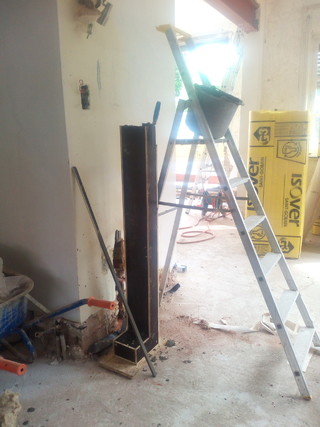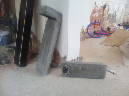 Tijdens het ontmantelen van de mal brak de “paal” natuurlijk op het zwakste punt waar de uitsparing zat voor de contactdoos. Wapenen met ijzers zou maar een oplossing zijn die tijdelijk zou werken. Breken zou het uiteindelijk toch doen.