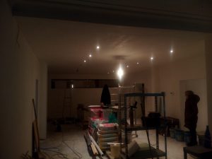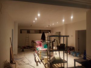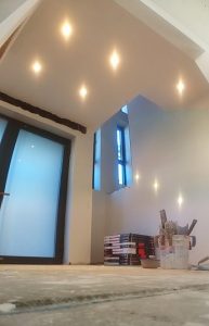 Na een beetje (veel) knoeiwerk om de spotjes in het plafond te krijgen was het moment aangebroken om even “snel” veel licht te proberen aansteken.