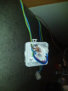 Het elektrisch systeem eaton: werkt bijna prima… we hebben (waarschijnlijk door de toevoeging van allerlei staal in de muren) minder ontvangst als voorheen. Het gevolg is dat het punt dat voorzien was om het licht in de berging aan-uit te doen en een alles-uit-knop te voorzien niet bereikbaar is door het systeem. Dit probleem kon relatief eenvoudig opgelost worden door een actor uit de kast te halen en te plaatsen in de keuken. Deze zorgt(/de) voor de bediening van het licht onder de keukenkasten (ook nieuw led-strip). Deze werd dus kwasi-rechtstreeks aan de lamp gekoppeld. Hierdoor kan deze als ontvangst-en-zendpunt gaan dienen om het signaal door te sturen naar de actor van de berging (dewelke wél in de kast hangt).