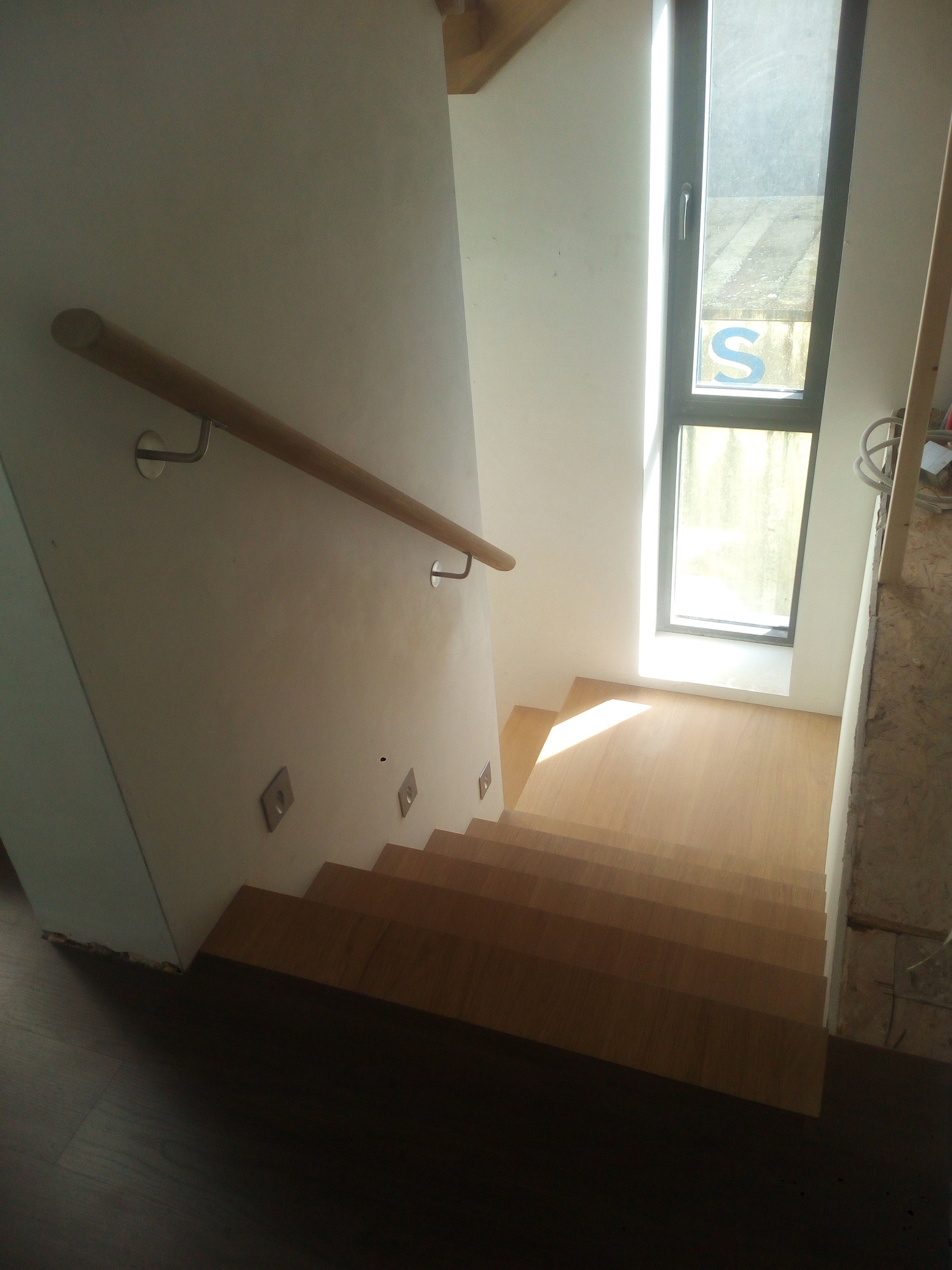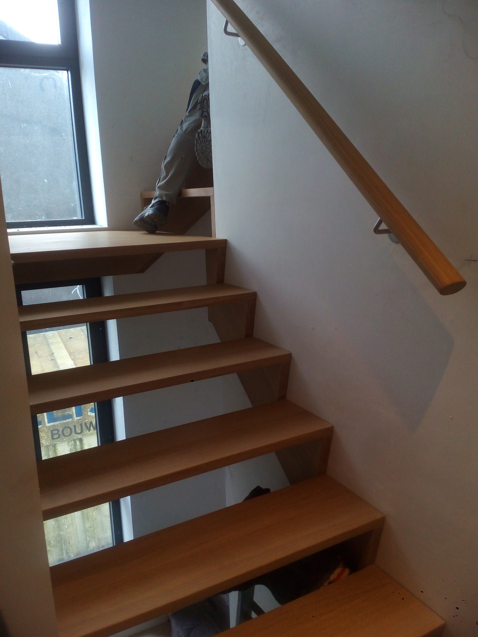 De trap werd ook verder geplaatst. Wederom: wowow… knap en zoals reeds vermeld aan de verantwoordelijken: hoedje af en dikke bravo voor de plaatsers. Onze complimenten (en die van enkele bezoekers)! Effectief… het is niet goedkoop, maar Stevens Houttechniek is zeker niet één van de duurdere, en voor zulk een bedrag mag zoiets wel goed zijn. Awel, het IS ook goed en het mag zeker gezegd EN gezien worden! Een volledige evaluatie komt er nog wel aan. Maar fotos trekken van een trappenhal is best wel moeilijk.