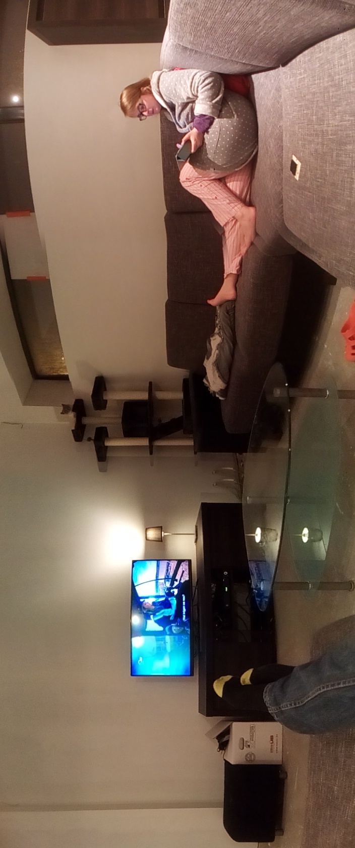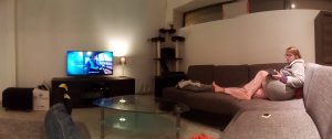 In de avond zitten we dan ook zo gezellig, zo ver mogelijk van elkaar…. De poes is dus ook terug van weggeweest. Specials thanks to meme and bompa!