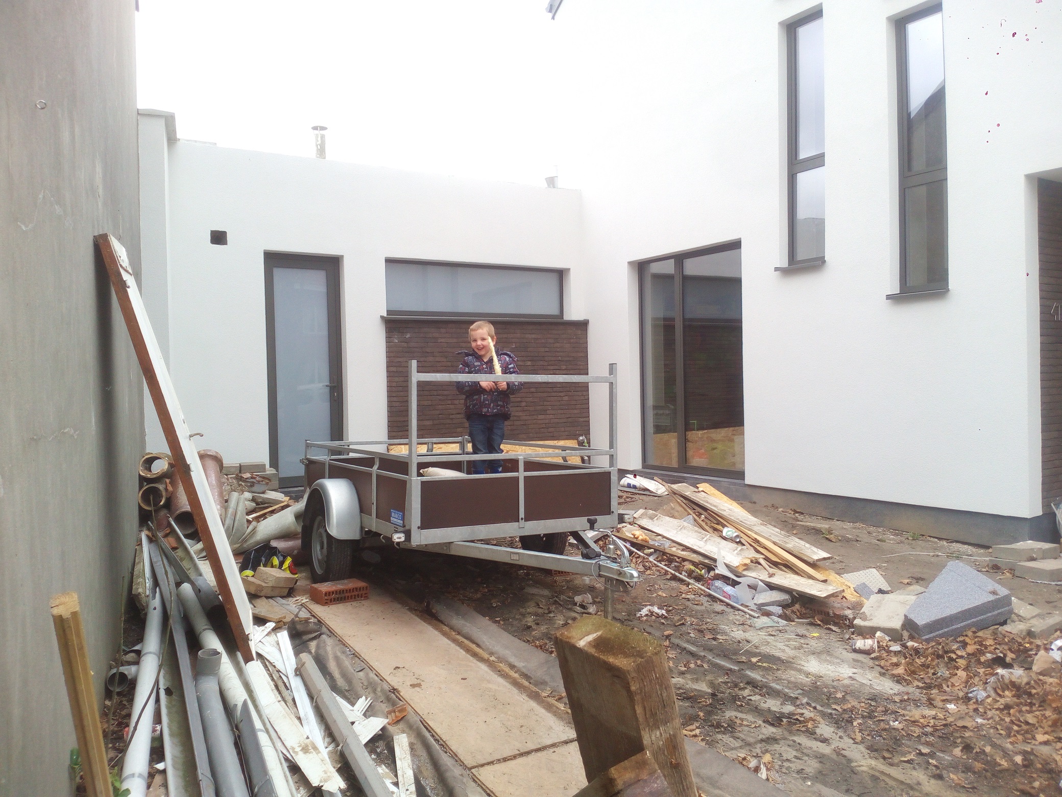 Onze container werd ook verwijderd, en daar kwam dus een half stort van onderuit. 🙂 Ok, het is een genante foto van de “bazaar” die in de voortuin ligt, maar het goede nieuws is wel dat die ondertussen weg is :-).
