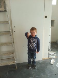 wat is er in tussentijd gedaan: veel en niks… Heel veel kleine minder zichtbare werken of werkjes die met 2 kindjes in de buurt wel net het driedubbele van de tijd in beslag nemen :-). Eerlijkheidshalve is dat af en toe zeer frustrerend (je moet al uitrekenen wanneer je gaatjes kan boren), langs de andere kant is het aspect familie plots terug en dat maakt veel goed!