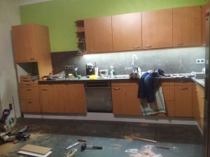 Ivm de inrichting en een initiële opkuis: special thanks to Anne en Jasper!!! Het verhuizen hebben we inderdaad zelf kunnen doen en het legen van de container hebben we beetje bij beetje kunnen doen, maar een eerste keer top-down opruimen, installeren en opkuisen was een zéér zwaar overschat werkje! Als ik dan zeg dat we een hele dag zijn beziggeweest, dan is dat niet eens overdreven!