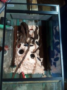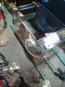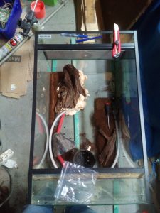 Zo… tijd om een beetje te knutselen. Na lang wikken en wegen is de beslissing genomen. alle visbakken gaan eruit, alle ditjes en datjes ook en er blijft nog 1 terrarium staan in huis (op de kop kunnen tikken op een veiling).