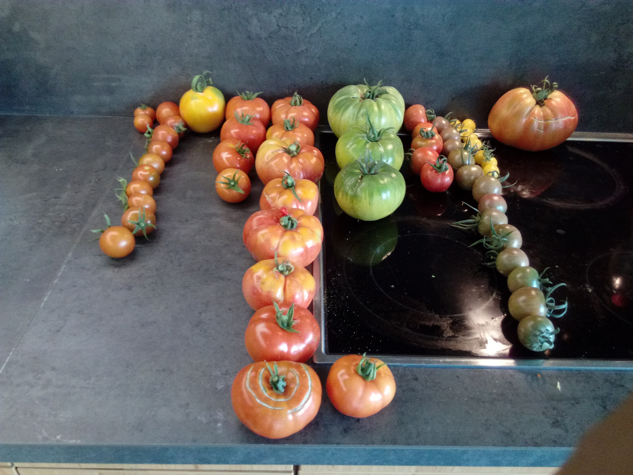 De tomaatjes doen het goed, maar momenteel beginnen de temperaturen te zakken, wordt het vochtiger en dus het oogsten zal waarschijnlijk relatief snel gedaan zijn. De ziektes zullen de kop opsteken enz….